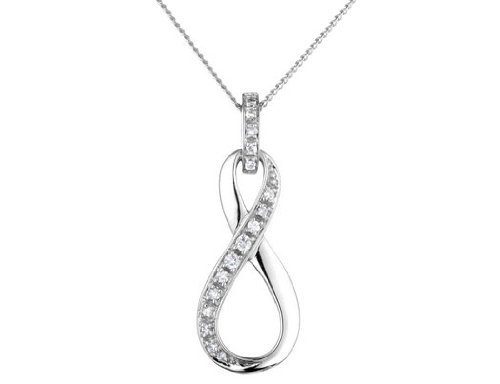 This stylish drop pendant features a curvy white gold figure eight and 16 sparkling diamonds across the left to complete the look. Makes a great gift for her or for yourself. SKU: 02JS5547W