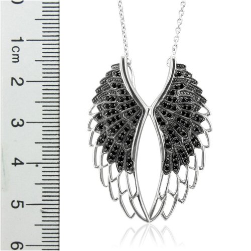 See more technical detailsBuy Sterling Silver Angel Feather Wing BLACK Diamond Pendant Necklace - 0.50 carat Now