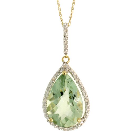 See more technical detailsBuy 10k Gold 18" Thin Chain & 1 1/8" (29mm) tall Pear-shaped Pendant, w/ Brilliant Cut Diamonds & 15x10mm Pear Cut Green Amethyst Stone Now