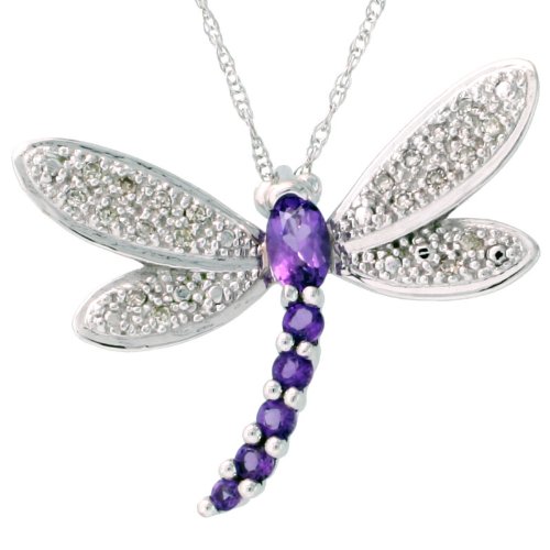 See more technical detailsBuy 10k White Gold 18" Thin Chain & 7/8" (22mm) tall Dragonfly Pendant, w/ 0.50 Total Carat Weight Brilliant Cut & Oval Cut Amethyst Stones, & Brilliant Cut Diamonds Now