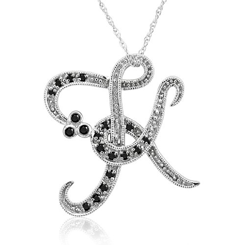 See more technical detailsBuy 14k White Gold Alphabet Initial Letter K Black Diamond Pendant Necklace-0.12 carat Now