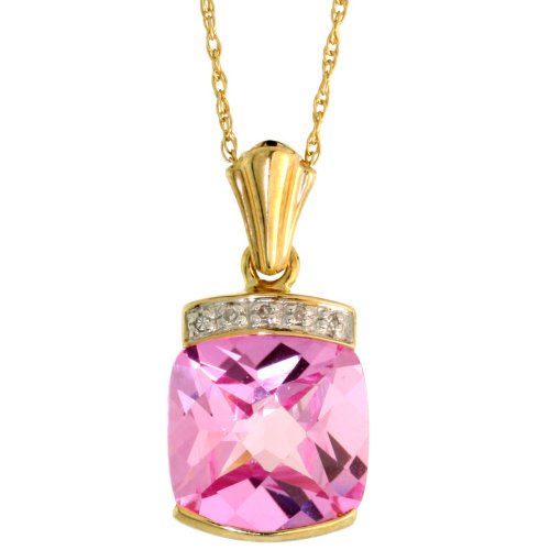 See more technical detailsBuy 10k Gold 18" Thin Chain & 9/16" (15mm) tall Square-shaped Pendant, w/ Brilliant Cut Diamonds & Cushion Cut (10mm) Pink Topaz Stone Now