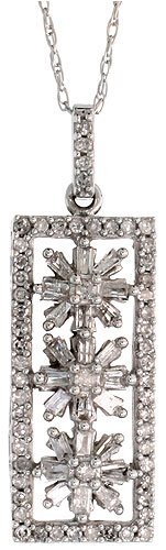 See more technical detailsBuy 10k White Gold 18" Chain & 15/16" (24mm) tall Floral Bar Pendant, w/ 0.42 Carat Baguette & Brilliant Cut Diamonds Now