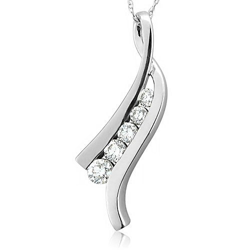 See more technical detailsBuy 14k White Gold 5-Stone Ribbon Journey Diamond Pendant Necklace (GH, SI-I, 0.37 carat) Now