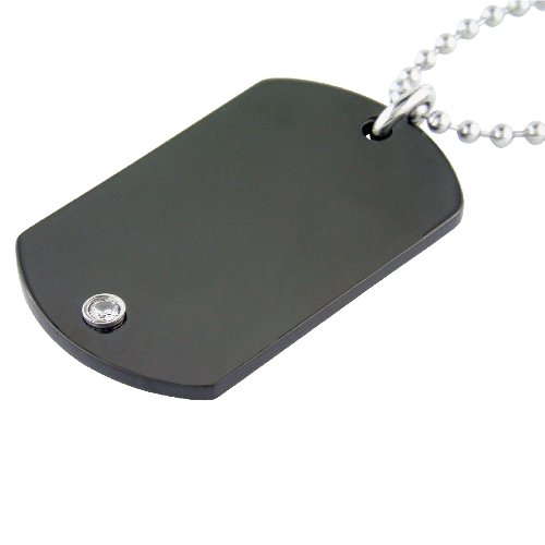 Offer him a stylish modern look with this men's dog tag pendant, crafted in black-plated stainless steel and detailed with a genuine diamond accent. A masculine and versatile accessory, it comes complete with a 22-inch silvertone stainless steel ball chain. Durable, affordable, and easy to care for, stainless steel is an attractive jewelry metal choice.