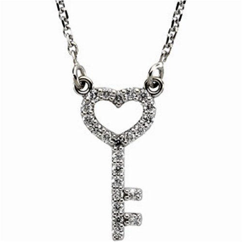 - A lovely Heart & Key Diamond Pendant Necklace.- Crafted in 14K White Gold.