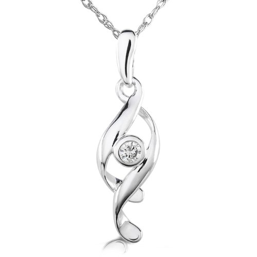 Beautiful swirl pendant featuring a Bezel-Set Round-Brilliant Diamond. Pendant Length: 21.5mm.