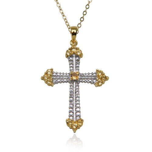 Buy 18k Yellow Gold Plated Sterling Silver Citrine 3mm and Diamond Cross Pendant, 18" Now