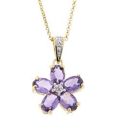 See more technical detailsBuy 18kt Over Sterling Silver Genuine Amethyst and Diamond Accent Flower Pendant Now