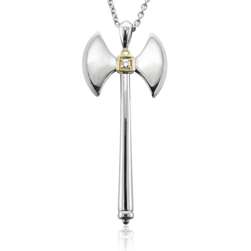 See more technical detailsBuy Men's 14k Gold and Silver Ax White Diamond Pendant Necklace - 0.05 carat Now