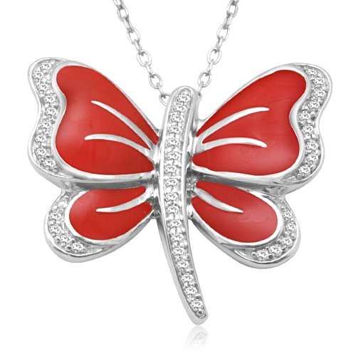 Carry a hint of spring with you through the seasons. This vibrant butterfly pendant is crafted in sterling silver with glossy red enamel wings and 1/5 carat of sparkling diamonds. Suspended from an 18-inch sterling silver chain, it's an eye-catching accent for any occasion.